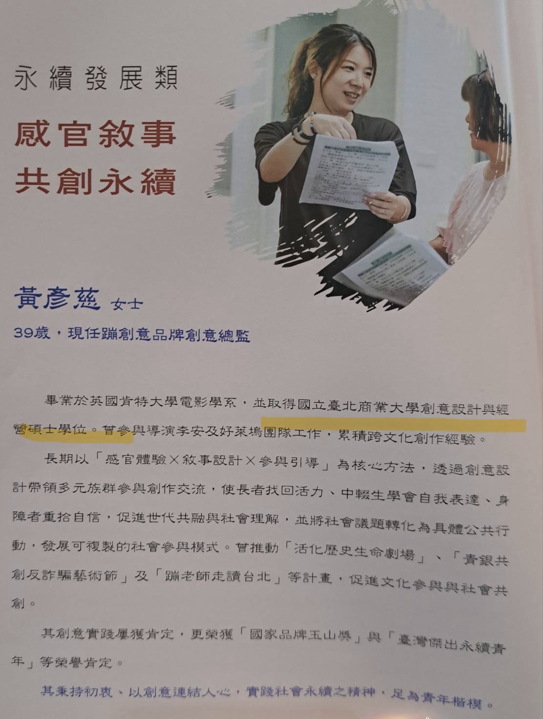 得獎學生:產業碩士專班 黃彥慈 同學